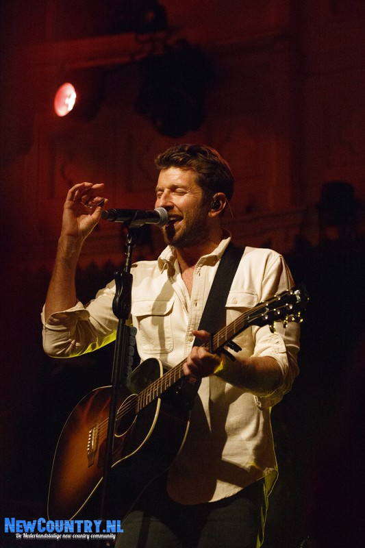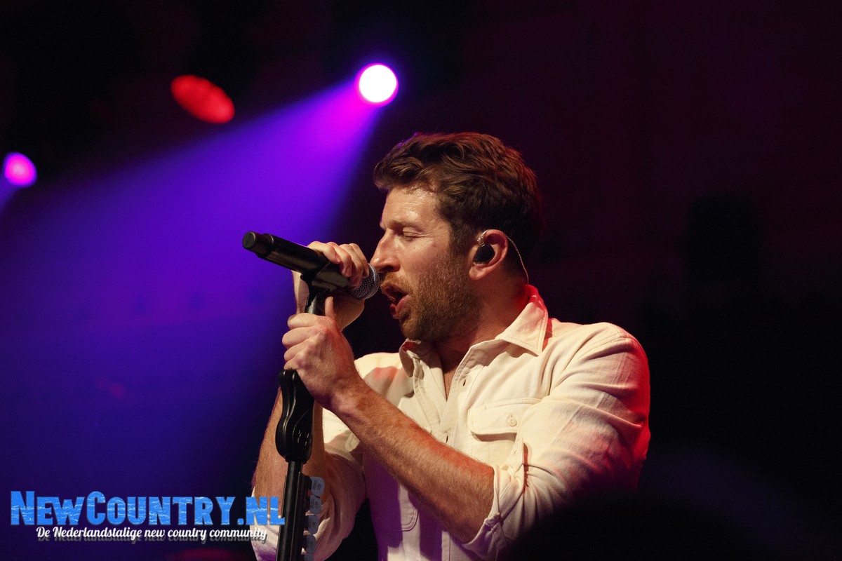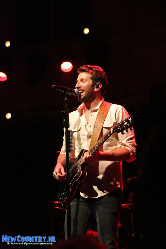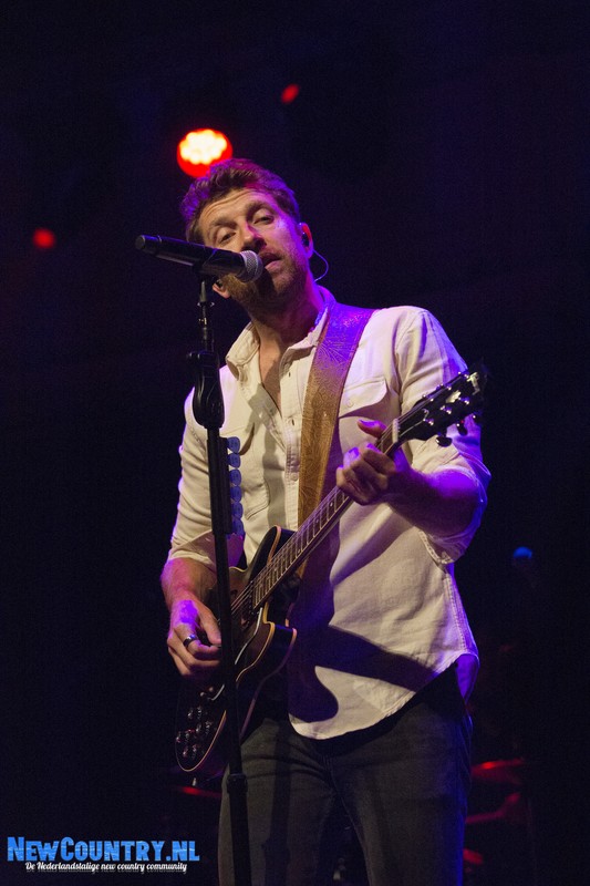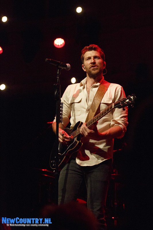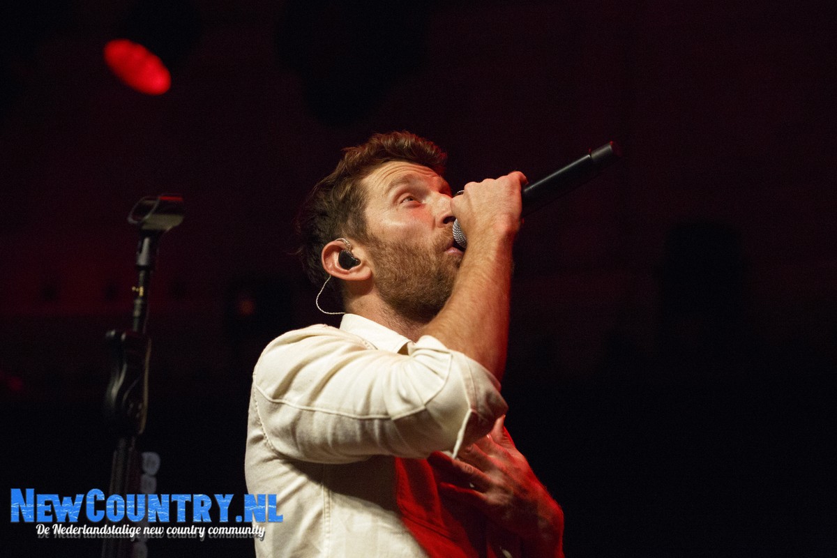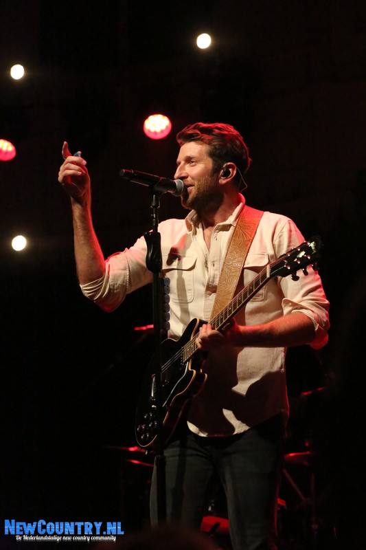 Direct nadat Jenkins met gitaar het podium heeft verlaten, is er al wat spanning voelbaar in de zaal. In een intieme setting als Paradiso is het bijzonder te noemen een artiest als Brett Eldredge, met negen hitlijstnoteringen op zijn naam in de VS, te mogen verwelkomen. Daarbij mag worden opgeteld dat menig vrouwelijk bezoeker niet geheel ongecharmeerd is van het uiterlijk van de zanger… Toch zijn het zowel VROUWEN-áls mannenstemmen die even over half negen de zanger met een daverend gejuich ontvangen. In enkel blauwkleurige podiumlampen tast Eldredge het Amsterdamse publiek even af, totdat hij kordaat op de microfoonstandaard af stapt en met zijn herkenbaar guitige blik de zaal in kijkt. De zanger die recentelijk zo openlijk uitkwam voor zijn angststoornis, zoekt het vertrouwen van het publiek, welke vanaf minuut één ademloos aan zijn lippen hangt.