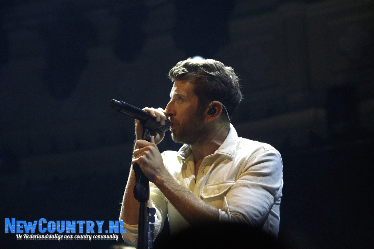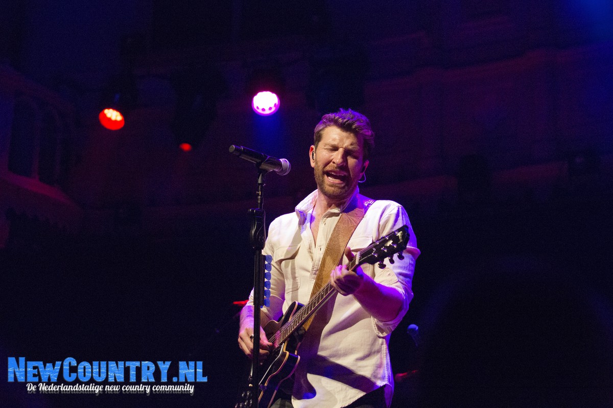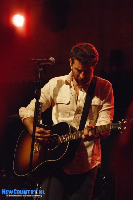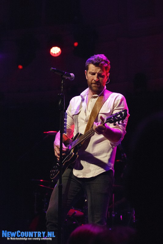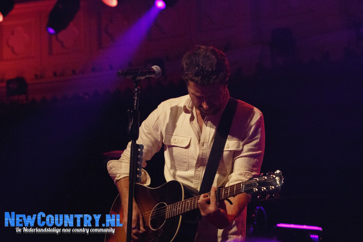 Direct nadat Jenkins met gitaar het podium heeft verlaten, is er al wat spanning voelbaar in de zaal. In een intieme setting als Paradiso is het bijzonder te noemen een artiest als Brett Eldredge, met negen hitlijstnoteringen op zijn naam in de VS, te mogen verwelkomen. Daarbij mag worden opgeteld dat menig vrouwelijk bezoeker niet geheel ongecharmeerd is van het uiterlijk van de zanger… Toch zijn het zowel VROUWEN-áls mannenstemmen die even over half negen de zanger met een daverend gejuich ontvangen. In enkel blauwkleurige podiumlampen tast Eldredge het Amsterdamse publiek even af, totdat hij kordaat op de microfoonstandaard af stapt en met zijn herkenbaar guitige blik de zaal in kijkt. De zanger die recentelijk zo openlijk uitkwam voor zijn angststoornis, zoekt het vertrouwen van het publiek, welke vanaf minuut één ademloos aan zijn lippen hangt.